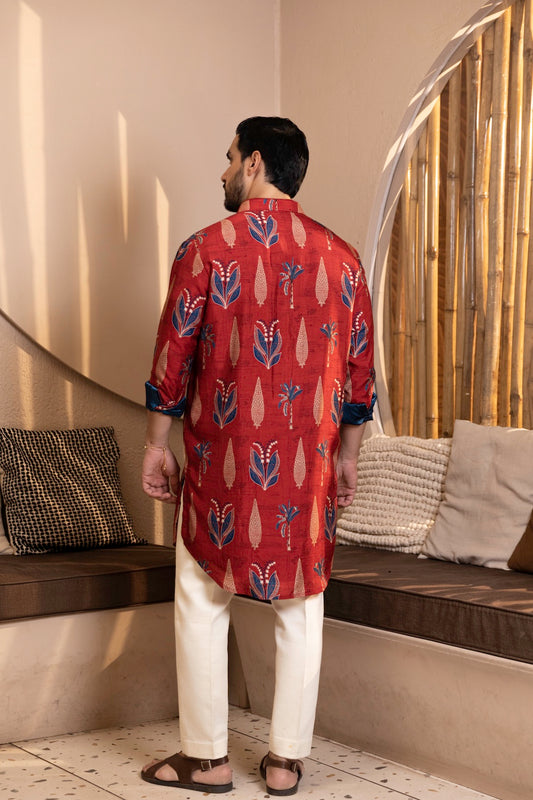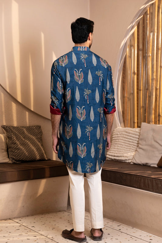 Palm Tree Print Kurta with Rollover Set